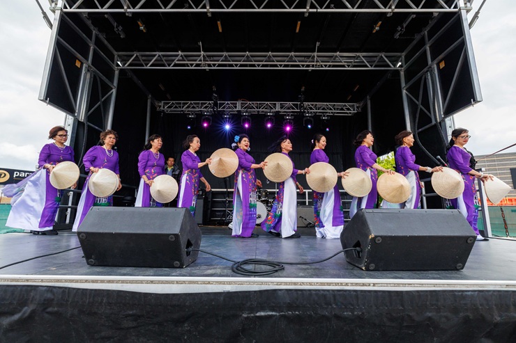 The Carassauga Vietnam Pavilion has been hosted by the Pham Performing Arts since 2014, showcasing Vietnamese culture, food, geography, fashion, and history. Food booths at the pavilion have provided visitors the chance to get a taste of authentic Vietnamese cuisine from local Vietnamese-owned food vendors. Visitors can also experience the beautiful performances of fan dancing, fashion shows, and modern Vietnamese singing performances.